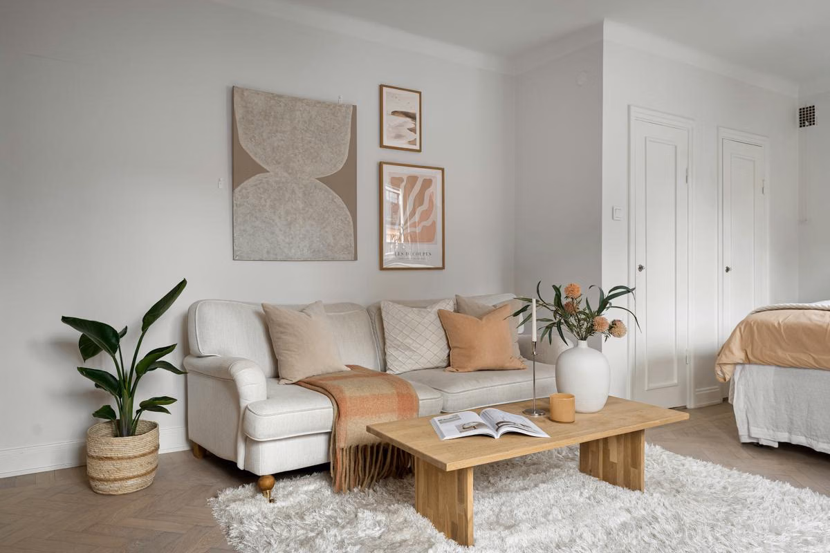 Gunakan tekstil dengan warna netral atau lembut untuk menambah kedalaman tanpa menimbulkan kekacauan visual. Selimut, bantal, dan permadani kecil bisa mengubah suasana cepat.